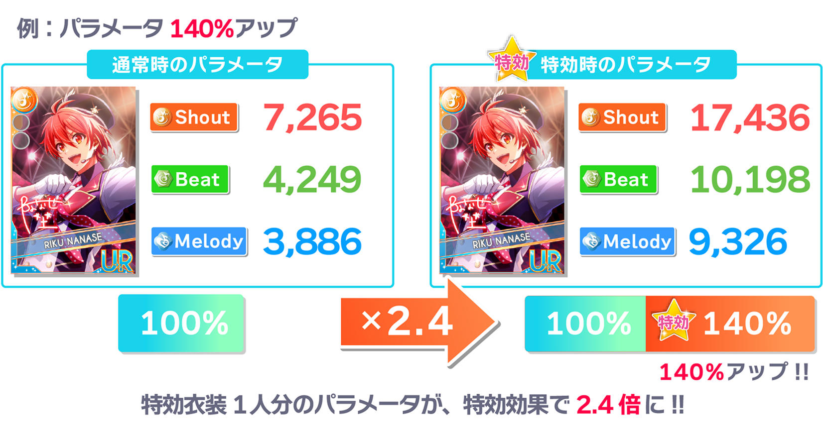 イベントにおいて、特効衣装にはパラメータを上昇させる効果があります。